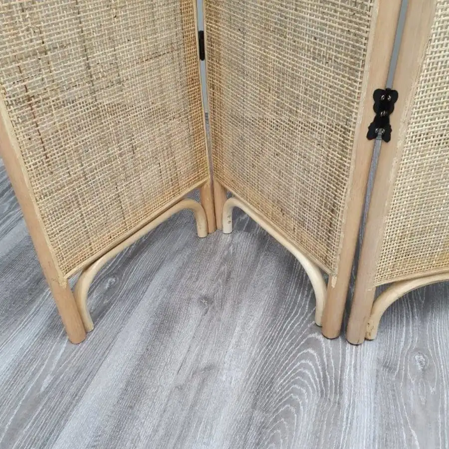 Albert rattinkisermi is an excellent and stylish room divider. It is also easy to move from place to place as needed. The three-part screen is hinged, so you can adjust its length and shape on the floor to your liking.